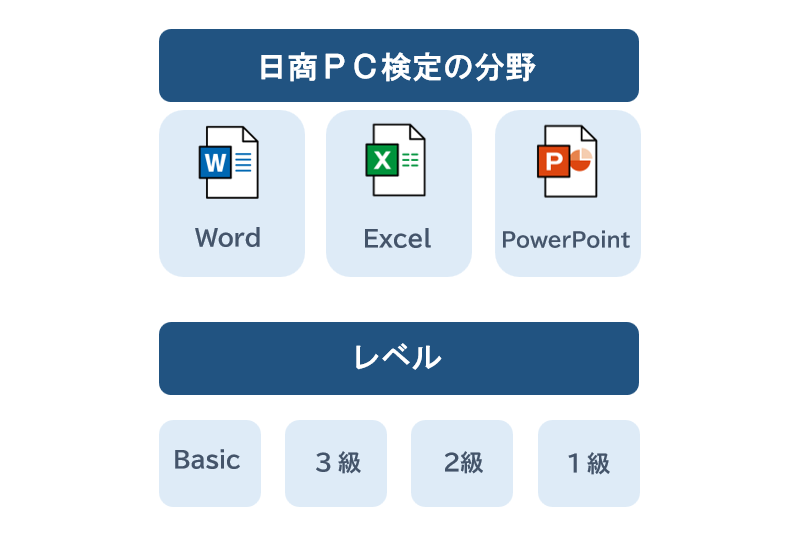 日商PC検定には、大きく分けて以下の3つの分野があります。